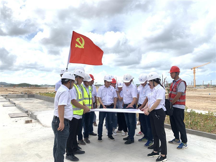 黨員帶領(lǐng)項目管理人員研究圖紙