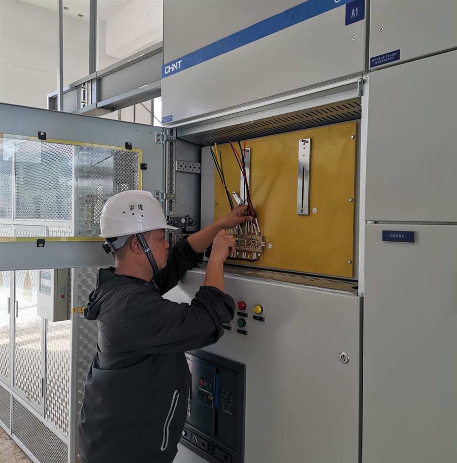 賀毅在檢查設(shè)備電路情況