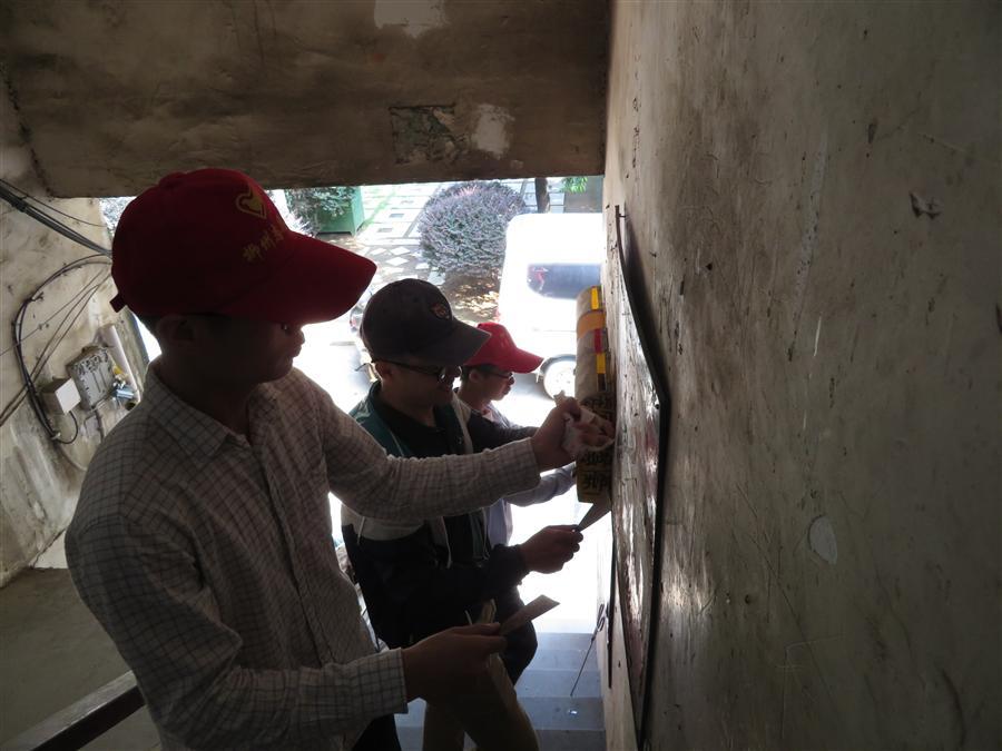 為結(jié)對社區(qū)居民營造整潔優(yōu)美、文明有序的居住環(huán)境是我們此次活動的主要內(nèi)容。上午9點,我司黨員志愿者來到北雀社區(qū),與社區(qū)工作人員一起帶上清潔工具前往居民樓清理小廣告。