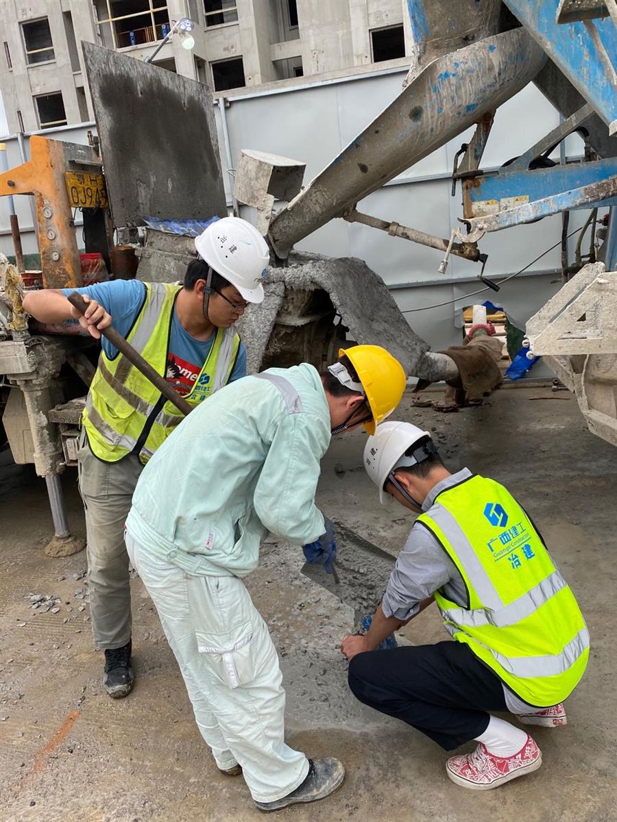 馬達(dá)聲、電鉆聲轟鳴,混凝土攪拌車(chē)、混凝土泵車(chē)、材料運(yùn)輸板車(chē)、土方綠皮車(chē)來(lái)往穿梭,綁扎鋼筋、混凝土塌落度試驗(yàn)、澆筑混凝土、升爬架前驗(yàn)收等工作有條不紊進(jìn)行,這是第四分公司融創(chuàng)江南林語(yǔ)項(xiàng)目的趕工現(xiàn)場(chǎng)。