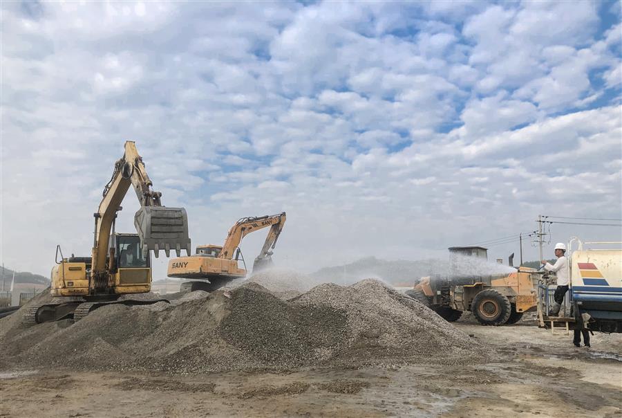 在柳州市洛維路西段北側(cè)規(guī)劃路網(wǎng)工程規(guī)劃一路(A0+000——A0+536.854)、規(guī)劃三路、規(guī)劃五路工程施工現(xiàn)場(chǎng),挖掘機(jī)、沖孔樁樁機(jī)、起重機(jī)正開足馬力運(yùn)行,工人們?cè)阡摻罴庸づ飪?nèi)有序地捆扎鋼筋,放眼過去是一片熱火朝天的景象。針對(duì)因沖孔樁線處于沖溝地帶,地質(zhì)情況復(fù)雜,沖孔過程不斷出現(xiàn)漏漿、偏孔現(xiàn)象的問題,現(xiàn)場(chǎng)技術(shù)管理人員帶班作業(yè),全程監(jiān)控澆注過程,確保全線沖孔灌注樁澆筑安全有序進(jìn)行。