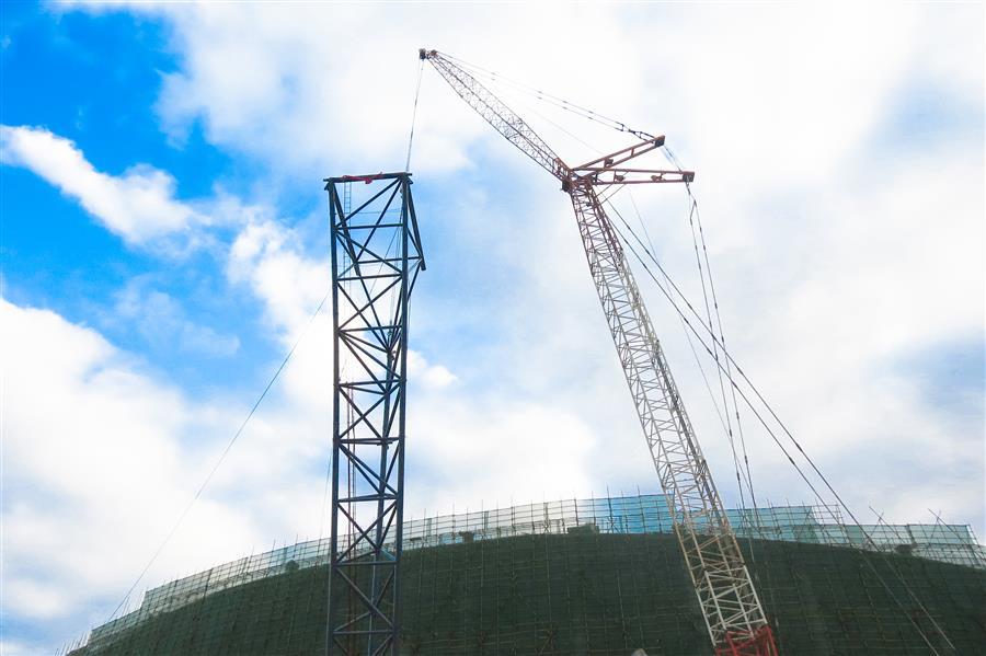 靖西市乒乓主題體育公園項目鋼結(jié)構(gòu)首榀桁架柱順利吊裝