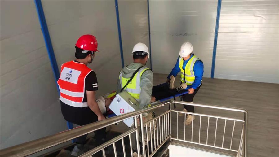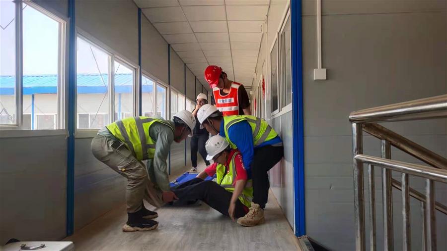 活動過程中,分公司經(jīng)理在項目部會議室向大家講解消防、觸電安全常識、應(yīng)急救援等相關(guān)知識點,并播放了相關(guān)教學(xué)視頻。項目安全總監(jiān)介紹了滅火器材的使用,并組織進行實地滅火實物操作演習(xí)。分公司管理人員、項目管理人員和從業(yè)人員分別進行了觸電應(yīng)急救援,火災(zāi)人員疏散,滅火器、消防水槍使用演練。