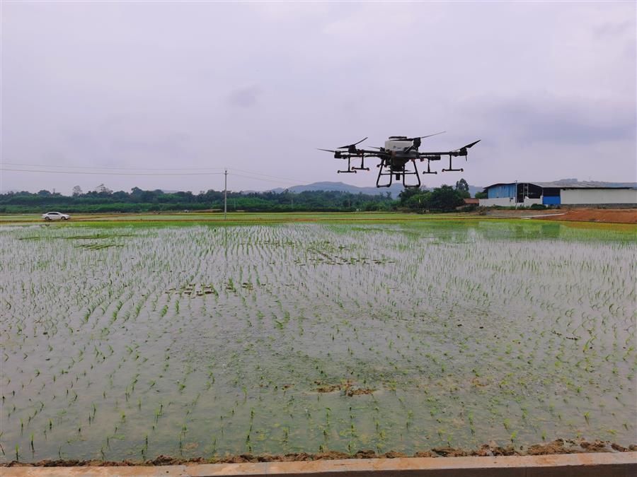 無人機正在施肥噴藥