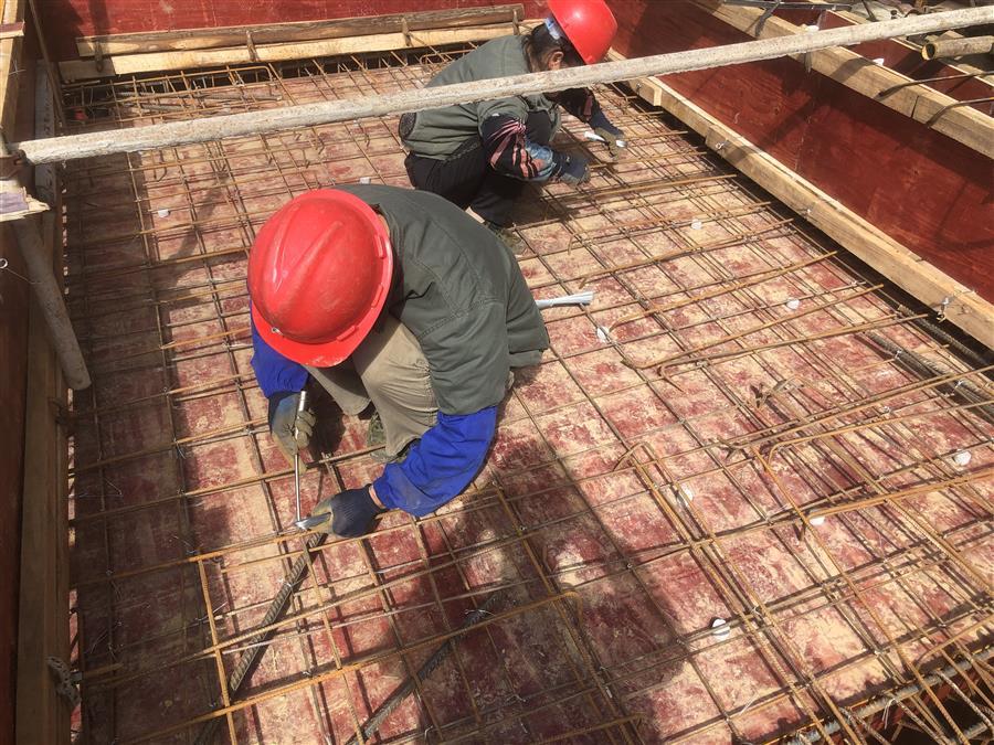 工人在綁扎鋼筋