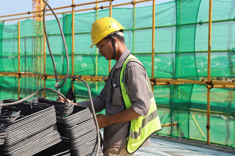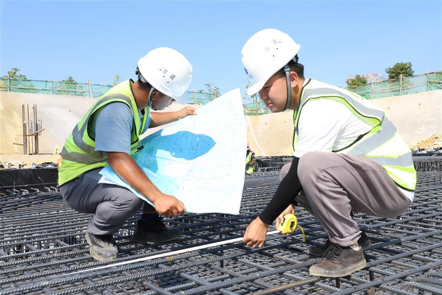 “我們在做好防暑降溫工作的同時,科學安排施工,全力保障施工進度?!表椖控撠熑岁悋普f,為避開高溫時段作業(yè),項目部把早上工作時間提前、下午工作時間推遲,錯開高溫時段作業(yè),每天早上6點,200多名班組工人就已到達現(xiàn)場,有序進行搭設支架、安裝模板、綁扎鋼筋等工作,現(xiàn)場一派熱火朝天的施工景象。