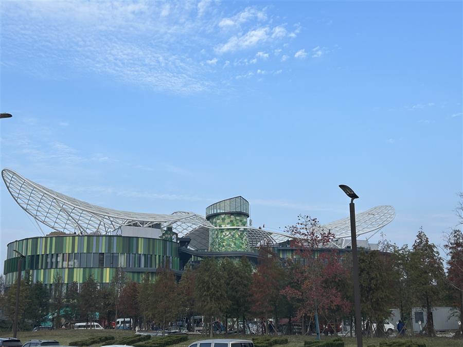 據(jù)悉,該項(xiàng)目位于江蘇省東臺市黃海森林公園內(nèi),由東區(qū)、西區(qū)及戶外休息區(qū)三部分組成,總建筑面積約1.8萬平方米,建筑高度22.77米,最大單跨跨度為45米。