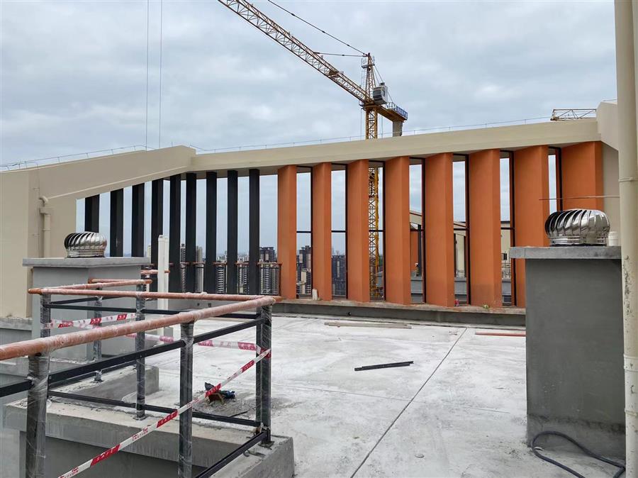 北投時代(二期)1#、2#、3#、5#、6#樓、北側(cè)大門及地下室工程項目總建筑面積為12.5萬㎡,地下2層,最大建筑高度為97.6m。目前,鋁合金門窗、陽臺欄桿安裝已完成工程量的80%,砌體工程、室內(nèi)抹灰、頂棚膩子、屋面構(gòu)架涂料已完成,5#、6#樓標(biāo)準(zhǔn)層住戶交付樣板已完成。
