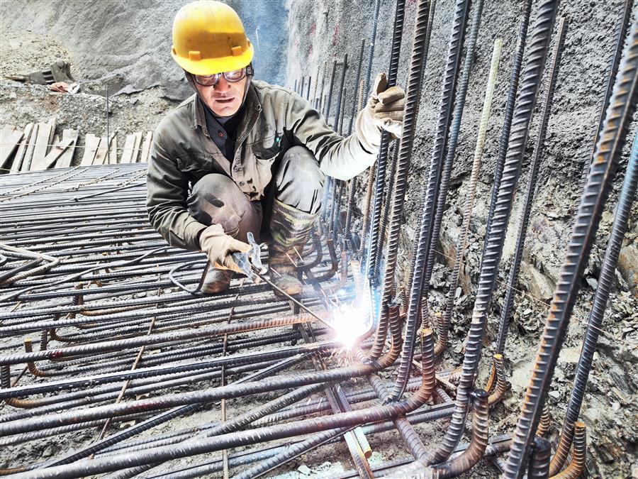 在施工現(xiàn)場(chǎng),機(jī)器轟鳴,挖掘機(jī)正在對(duì)隧道明洞部分的土方進(jìn)行開(kāi)挖,出渣車有序作業(yè)外運(yùn)渣土;工人們正有條不紊地焊接、搭建地連墻鋼筋籠;在隧道深處,一臺(tái)挖掘機(jī)在操作人員的操控下,正揮動(dòng)著“手臂”,配合著工人在對(duì)隧道路面做清理?!盀榧涌祉?xiàng)目施工進(jìn)度,我們采取人員倒班、設(shè)備不停,白天晚上不間斷施工?!表?xiàng)目經(jīng)理介紹說(shuō),目前隧道工程已全面貫通,爭(zhēng)取在春節(jié)前完成仰拱和墻供二襯砼澆筑。