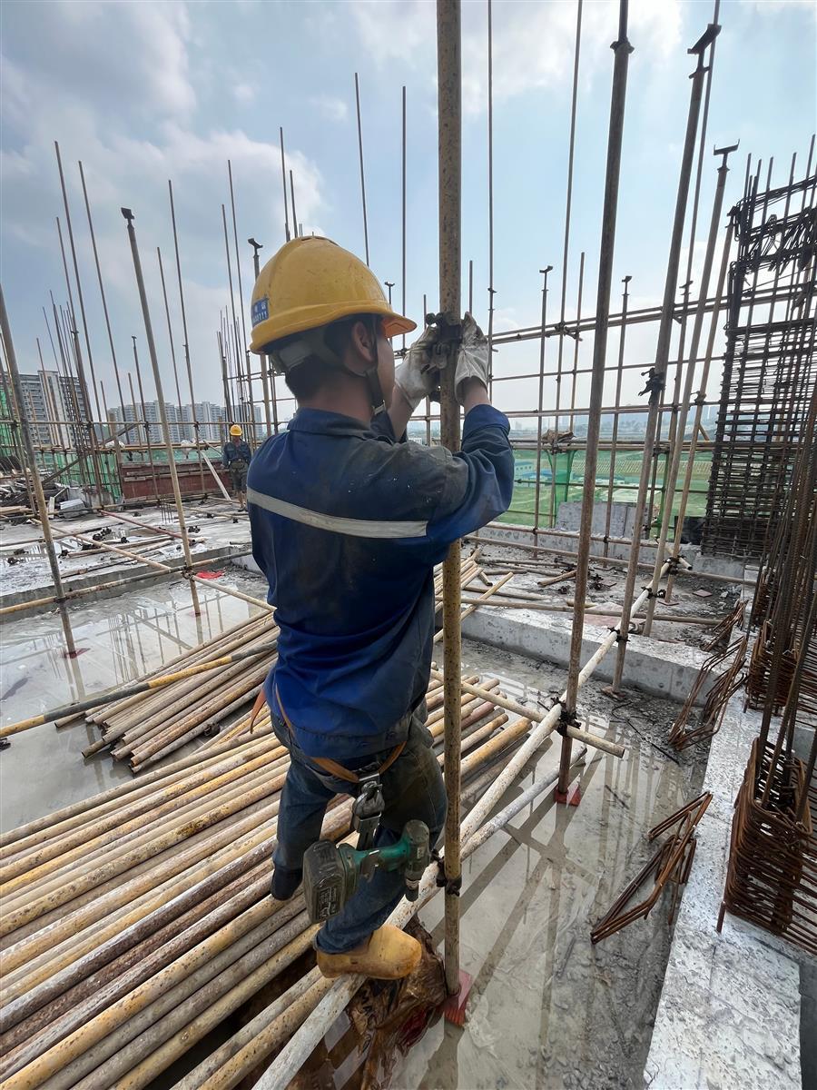 南寧市金侖路小學(xué)工程規(guī)劃建設(shè)校舍總建筑面積5.46萬平方米,地下1層,最大建筑高度為30.4米。目前,項(xiàng)目3#、4#教學(xué)樓1-3層砌筑、1-8軸屋面梁板混凝土澆筑及9-16軸屋面構(gòu)架已完成;1#、6#樓及大門樁基已完成78%;地下室深基坑支護(hù)樁完成100%。截至3月底,累計(jì)完成產(chǎn)值約3000萬元。