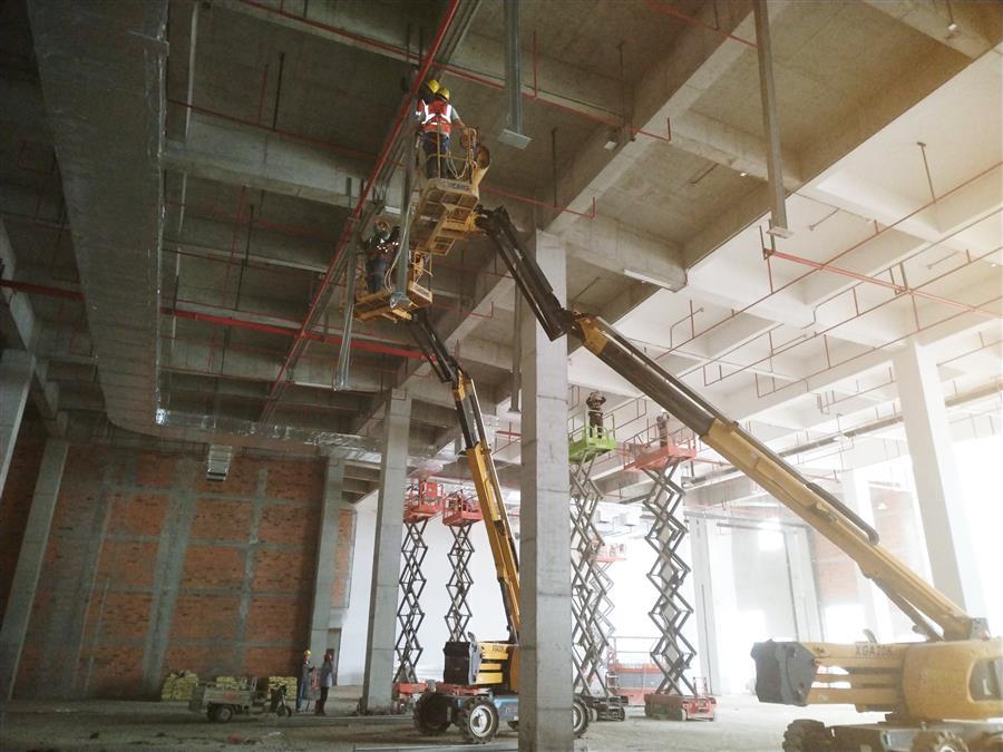雨天巧干、晴天大干。項(xiàng)目部制定周密、科學(xué)的施工計(jì)劃,提前做好應(yīng)急預(yù)案,每天根據(jù)天氣變化對(duì)工作時(shí)序、應(yīng)對(duì)措施、安全保障等情況進(jìn)行逐一落實(shí),充分利用好天氣窗口期,因時(shí)制宜,在保障安全作業(yè)的前提下,推進(jìn)穿插施工,盡一切可能搶抓進(jìn)度,將攻堅(jiān)再加速。目前,各樓棟水電消防完成90%,外墻膩?zhàn)雍屯鈮ζ崾┕ね瓿蛇^(guò)半,窗玻璃安裝完成60%,內(nèi)墻膩?zhàn)油瓿?0%;生產(chǎn)車間真石漆施工完成60%,49-61軸鋁板幕墻安裝完成15%,49-61軸二層金剛砂地坪完成30%,屋面卷材防水完成90%,屋面防水砼保護(hù)層完成60%;宿舍樓外墻裝飾線條完成80%,綜合樓外墻裝飾線條完成70%;室外管網(wǎng)路基施工完成40%。項(xiàng)目累計(jì)完成施工產(chǎn)值4.2億元,完成合同造價(jià)的82%。