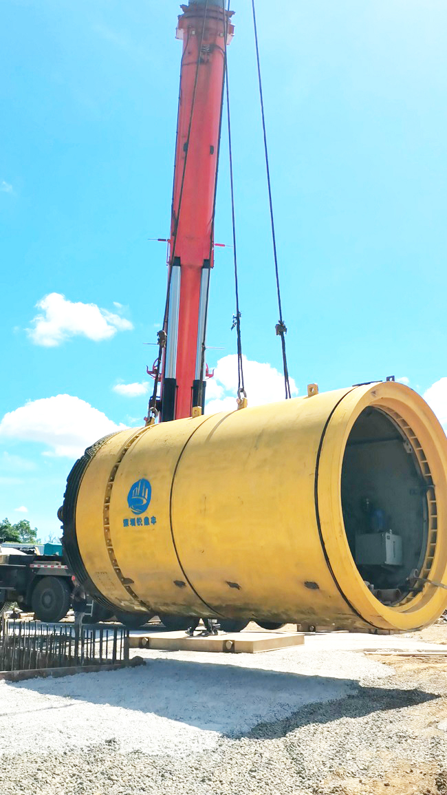 7月13日,冶建公司第三分公司承建的??谑杏^瀾湖北區(qū)區(qū)外排水工程(PG3 線)施工現(xiàn)場,一臺長6米、外徑3.6米,重95噸 的超徑巖石頂管掘進(jìn)機(jī)在起重機(jī)的牽引下精準(zhǔn)進(jìn)入到始發(fā)井的指定位置,標(biāo)志著項(xiàng)目建設(shè)邁入更為高效、有序的軌道。