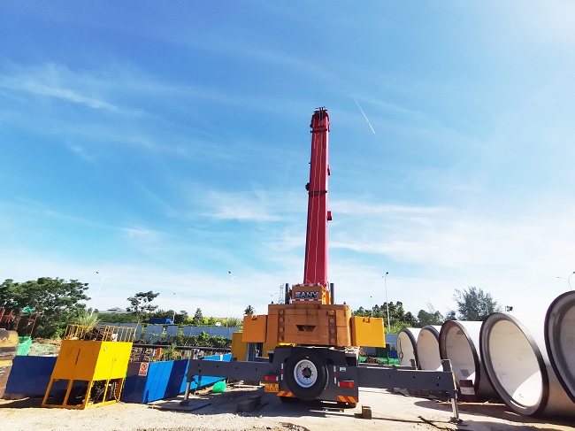 觀瀾湖北區(qū)區(qū)外排水工程(PG3 線)項(xiàng)目位于海南省??谑杏^瀾湖北區(qū),主要建設(shè)內(nèi)容為布置4.79km長的排水箱涵。項(xiàng)目所處位置的地質(zhì)環(huán)境復(fù)雜,還緊鄰高速公路,工作井靠近魚塘和高壓電塔,地上管線多,給施工作業(yè)帶來重重困難和挑戰(zhàn)。為了保證施工質(zhì)量和建設(shè)效率,第三分公司邀請專家精心策劃施工方案、組建精英團(tuán)隊(duì)施工,項(xiàng)目團(tuán)隊(duì)提前規(guī)劃好了運(yùn)輸路線,并與交通部門緊密協(xié)調(diào),確保了各項(xiàng)準(zhǔn)備工作的周全,為項(xiàng)目建設(shè)順利進(jìn)行奠定了堅(jiān)實(shí)的基礎(chǔ)。