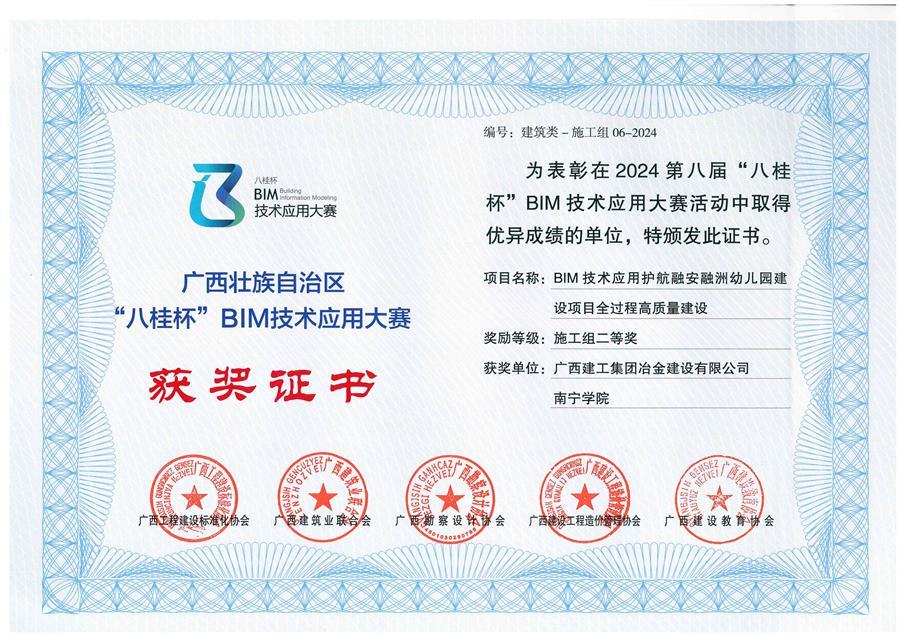 12月30日,冶建公司基礎(chǔ)分公司收到廣西第八屆“八桂杯”BIM技術(shù)應(yīng)用大賽榮獲施工組建筑類二等獎(jiǎng)的獲獎(jiǎng)證書(shū)。這是基礎(chǔ)分公司創(chuàng)優(yōu)工作的又一碩果。據(jù)統(tǒng)計(jì),2024年該分公司在BIM技術(shù)方面榮獲國(guó)家級(jí)獎(jiǎng)3項(xiàng),區(qū)級(jí)八桂杯二等獎(jiǎng)1項(xiàng);QC成果榮獲國(guó)家級(jí)QC成果4項(xiàng),部級(jí)QC成果3項(xiàng),區(qū)級(jí)QC成果15項(xiàng)。