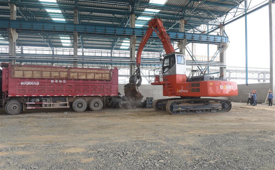儀式上,3000噸一類沖壓片包塊廢鋼在廣西鋼鐵1萬(wàn)噸碼頭卸船,隨后順利進(jìn)入設(shè)備安裝分公司承建的防城港鋼鐵基地項(xiàng)目(一期)廢鋼處理系統(tǒng)金屬材料加工配送中心廠房及公輔設(shè)施建設(shè)項(xiàng)目1#庫(kù)廠房,在場(chǎng)所有人見(jiàn)證了料場(chǎng)啟用。3000噸一類沖壓片包塊廢鋼順利進(jìn)場(chǎng),這意味著該項(xiàng)目正式啟用,并取得了階段性勝利。