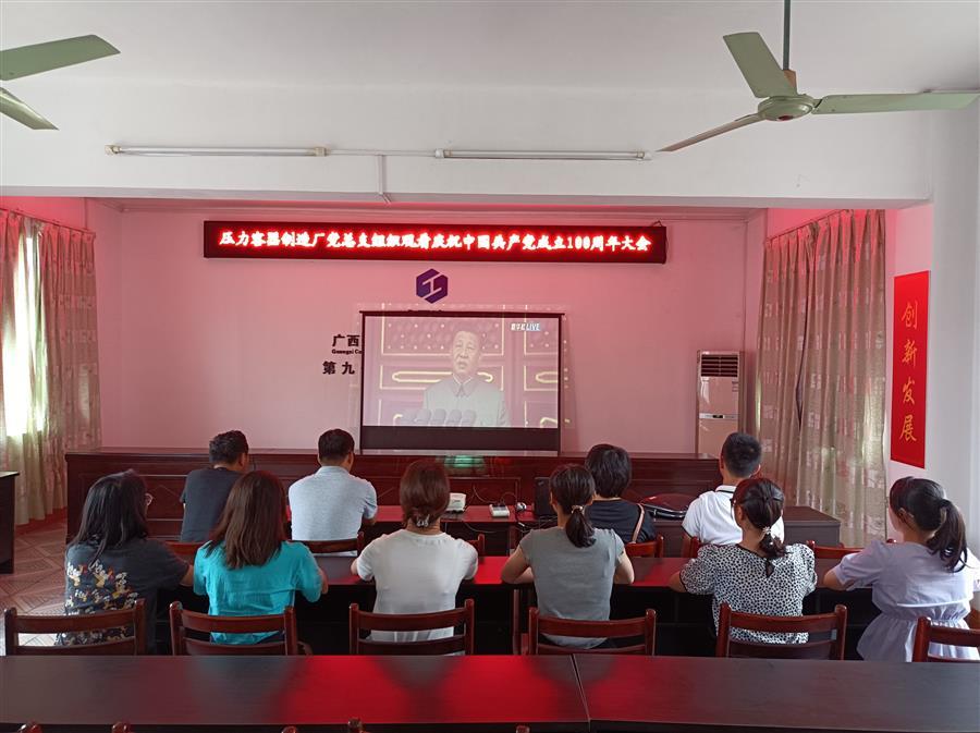 公司黨委組織員工收看慶祝中國共產(chǎn)黨成立100周年大會直播。公司領(lǐng)導(dǎo)班子成員覃振華、蒙勝益、賴海標(biāo)、廖立波、唐峰、阮仁勝、周善學(xué)、何勇,代財務(wù)總監(jiān)李芝霞,副調(diào)研員劉國江以及各基層黨組織黨員以集中或個人收看方式觀看大會直播。