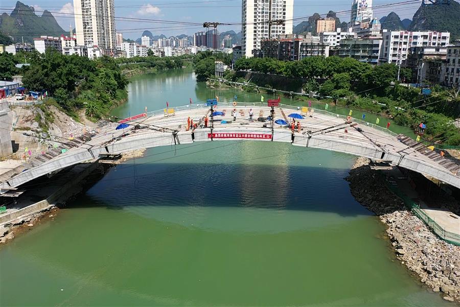 8月3日,隨著最后一節(jié)(第98節(jié))砼拱箱精準(zhǔn)吊裝至預(yù)定位置,標(biāo)志著冶建公司桂金分公司承建的河池市龍江六橋(輝樂橋)順利實(shí)現(xiàn)主拱圈全面合龍。公司黨委副書記、紀(jì)委書記、工會(huì)主席賴海標(biāo)到現(xiàn)場(chǎng)指導(dǎo)。