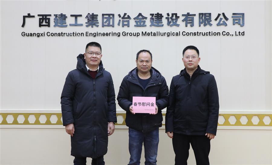 1月26日,公司副總經(jīng)理、總工程師廖立波到第九分公司慰問困難職工唐德旺、覃榮鋼、廖學群。