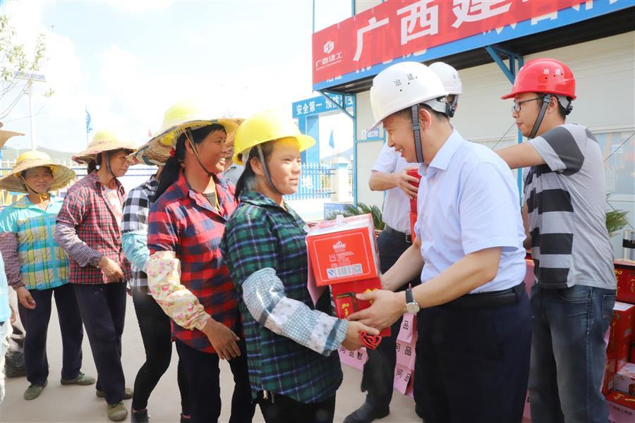 “送清涼啦!”在柳州市柳東新區(qū)竹爾屯棚戶區(qū)改造工程現(xiàn)場,一陣陣興高采烈的歡呼響徹項目部。7月4日下午,集團(tuán)公司黨委委員、副總經(jīng)理侯立林,市場經(jīng)營部部長駱春燕在高溫酷暑中為施工現(xiàn)場一線職工和勞務(wù)工送來“清涼”,公司黨委書記、董事長歐志永,黨委副書記、紀(jì)委書記、工會主席賴海標(biāo)參加慰問活動。