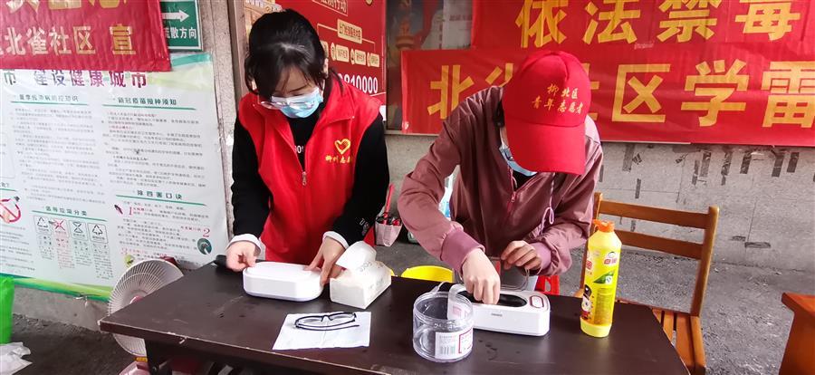 冶建公司青年志愿者在柳州市柳北區(qū)南雀社區(qū)轄區(qū)內(nèi)為居民提供志愿服務(wù)。