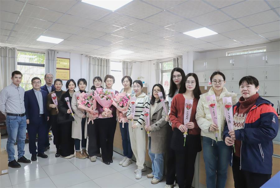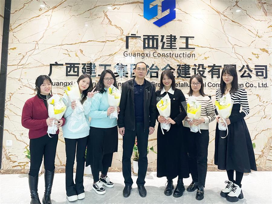 柳州市區(qū)農(nóng)村信用合作聯(lián)社潭中分社給冶建公司財(cái)務(wù)資產(chǎn)部女職工送上鮮花和節(jié)日祝福。