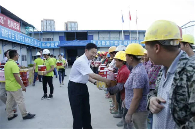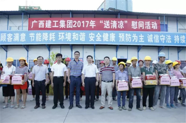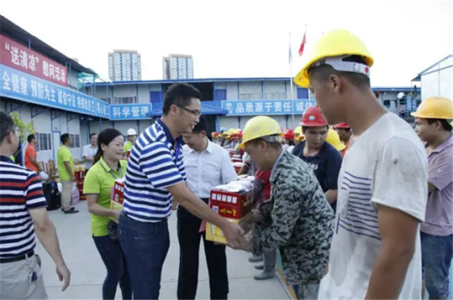 柳州市高新區(qū)科技園專家公寓樓工程由我司桂華分公司承建。8月7日下午,廣西建工集團副總經(jīng)理侯立林冒著高溫酷暑,專程從南寧前來項目建設(shè)現(xiàn)場給一線職工和農(nóng)民工“送清涼”,公司領(lǐng)導(dǎo)歐志永、賴海標(biāo)、廖立波參加活動。130多份價值9000多元的慰問品,在十多分鐘的時間里,全部發(fā)放完畢。